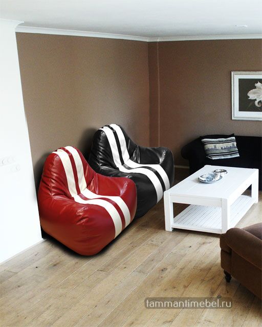 Кресло-пуф спортивного дизайна никого не оставит равнодушным! Спинка кресла отлично удерживает поясницу, а подлокотники позволят расслабиться рукам и плечам. Кресла изготавливаются из эко-кожи нового поколения с функцией легкой очистки: теперь Вы без труда сможете избавиться даже от следов шариковой ручки одной влажной салфеткой!